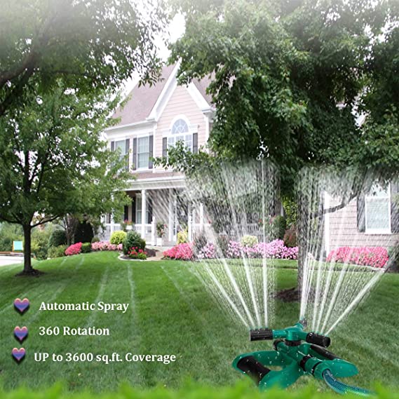 ✔️Rociador de agua automático, con 3 brazos giratorios ajustables y 12 boquillas de pulverización de diferentes ángulos integradas, sistema de riego eficaz para tu césped.