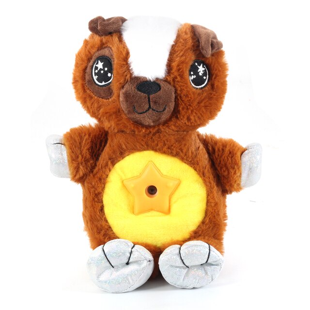 Son los tiernos y divertidos peluches para la hora de dormir. El vientre brilla como una luz nocturna relajante Proyecta 6 colores: blanco, rosa, azul, verde, café y multicolor Movimiento móvil: gira las luces de las estrellas Ideal para el hogar, viajes, fiestas de pijamas y más.